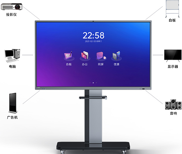 智能会议平板能将电子白板、投影仪、电脑、电视机、广告机、摄像头、高保真麦克风(距离在6米以内)、WiFi接入等多种功能完美地集成于一身,因此传统的视频会议室众多电子设备,现在只需一台智能会议平板就能完全代替,不仅品质好,而且价格低。