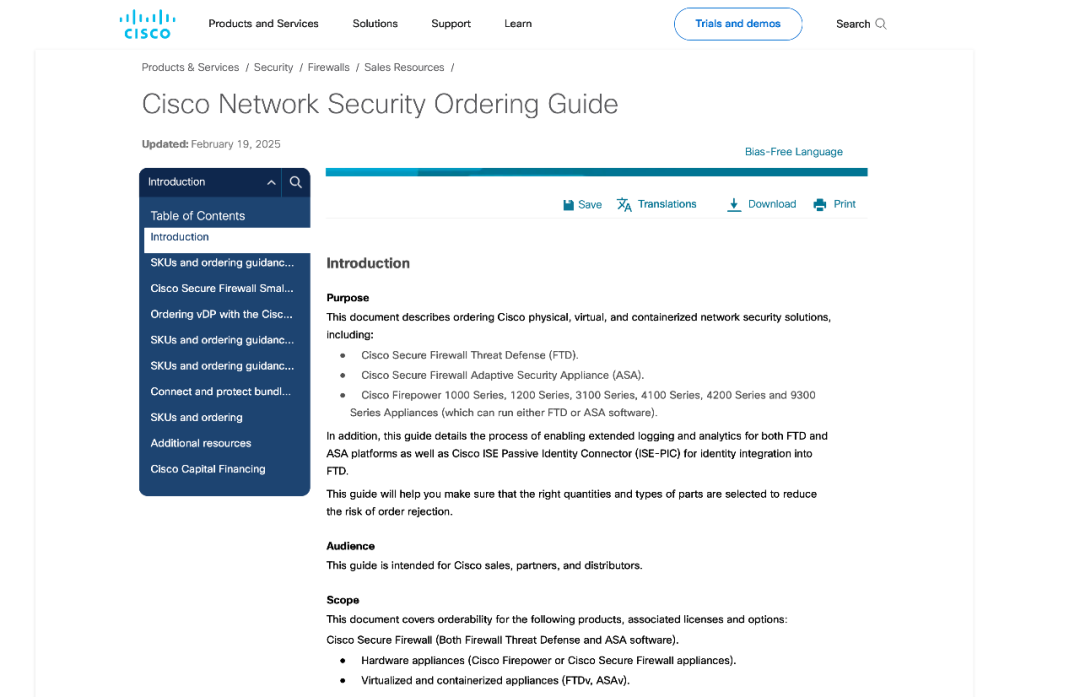 采购建议可以看Cisco Network Security Ordering Guide[3]