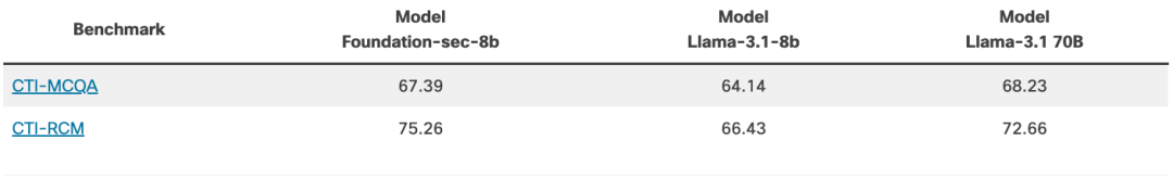模型的性能是衡量其有效性的关键。Foundation-sec-8b 在多项网络安全基准测试中展现了超越其规模的表现。