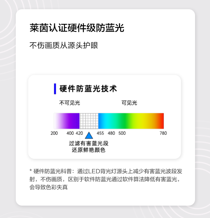 硬件级防蓝光技术搭配AG雾化类纸屏工艺,通过专业护眼认证,长时间办公也能降低眼部疲劳,高效工作的同时,守护用眼健康。