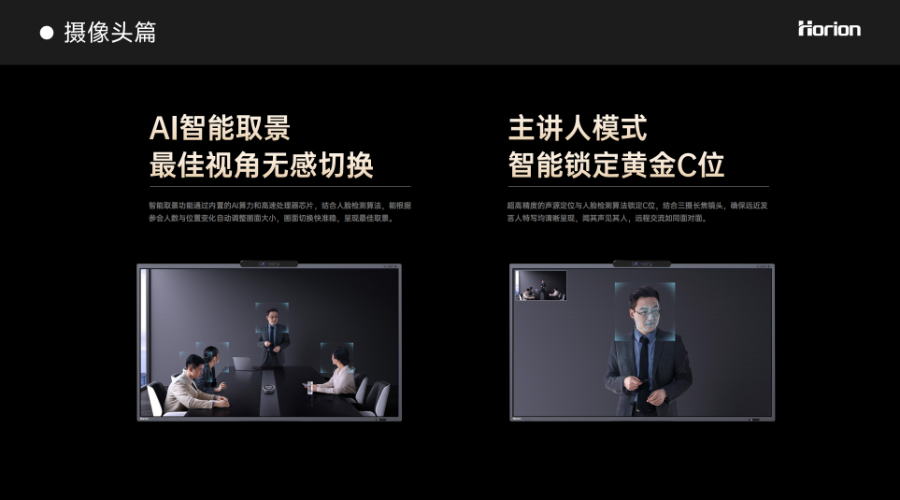 针对远程协作核心需求,主讲人模式搭载超精度人脸追踪算法,发言人从静坐到走动全程锁定,4K长焦特写无感切换,让远程交流真正实现“闻其声、见其人”的面对面体验。从此告别“只听其声不见其人”的尴尬,跨国协作、异地办公的临场感直线拉满。